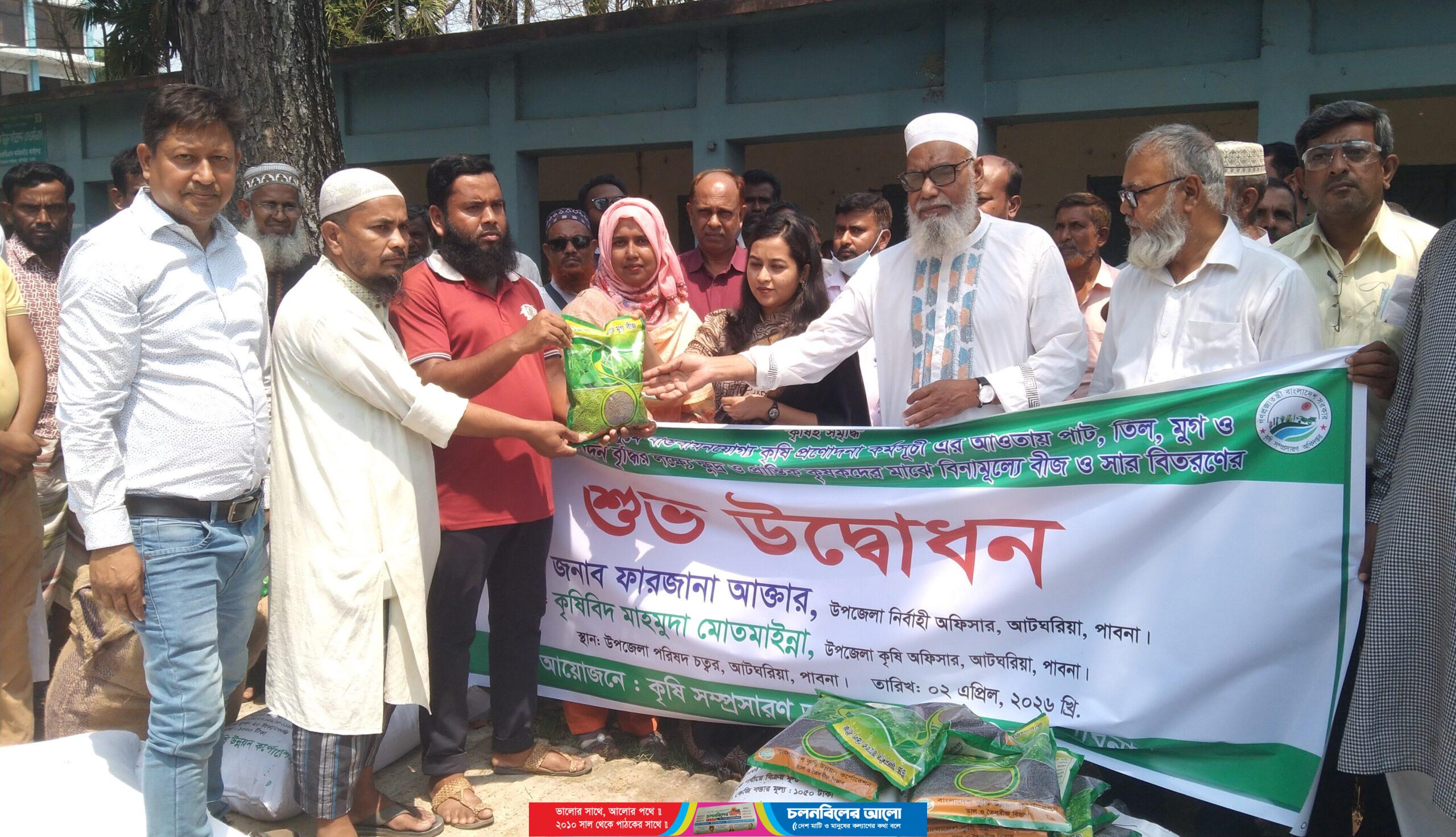 পাবনার আটঘরিয়া উপজেলায় খরিপ/২০২৫-২৬ মৌসুমে বাস্তবায়ন যোগ্য কৃষি প্রণোদনা কর্মসুচির আওতায় পাট,তিল, মুগ ও আউস ফসলের উৎপাদন সৃষ্টির লক্ষ্যে ক্ষুদ্র ও প্রান্তিক কৃষকদের মাঝে বিনামূল্যে বীজ ও সার বিতরণের শুভ উদ্বোধন অনুষ্ঠিত হয়েছে।