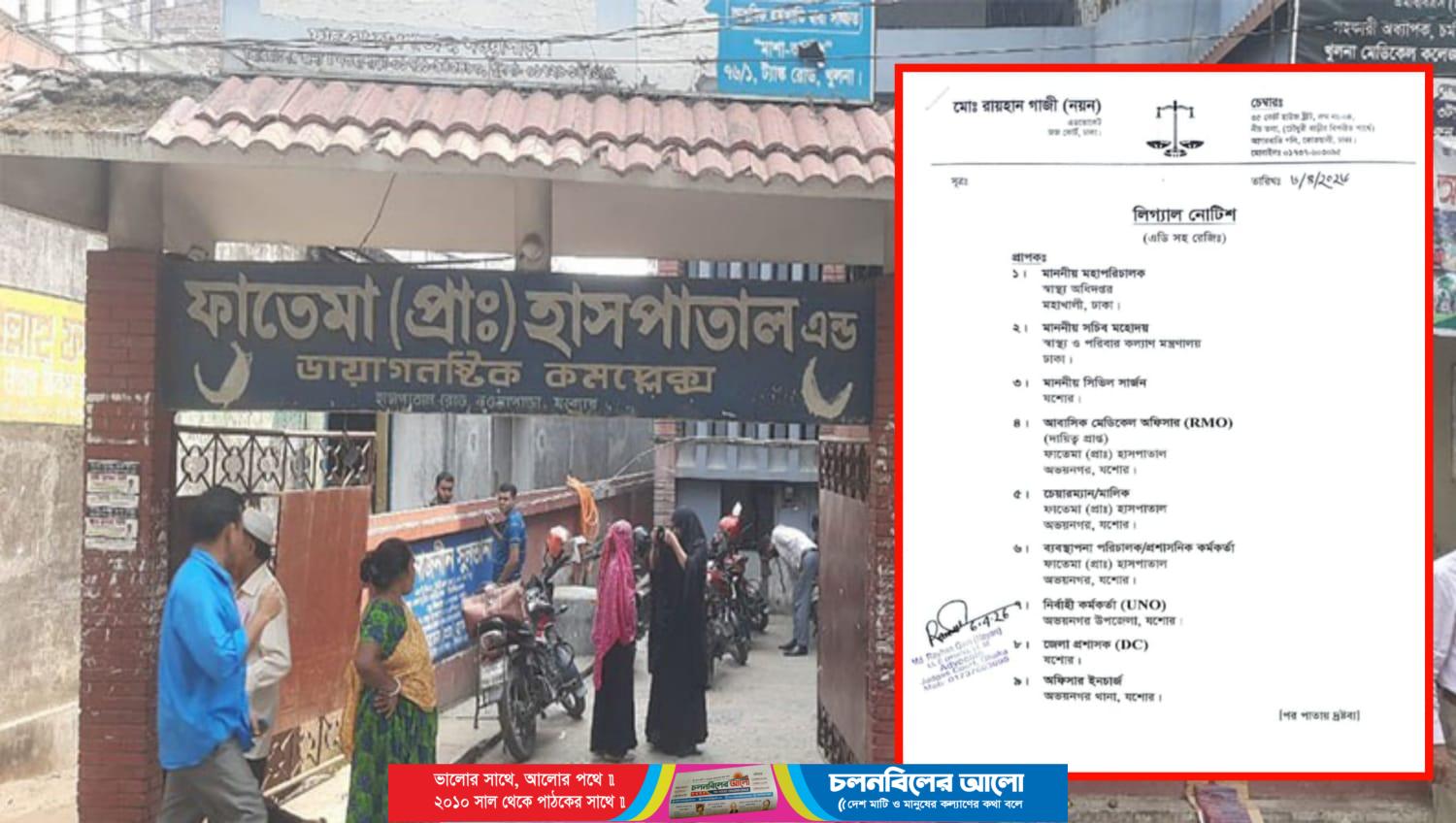 ফাতেমা (প্রাঃ) হাসপাতালে ভুল অপারেশনে মায়ের মৃত্যু: চলনবিলের আলো-এ সংবাদ প্রকাশের পর ৭ দিনের আল্টিমেটামে ৯ দপ্তরে লিগ্যাল নোটিশ