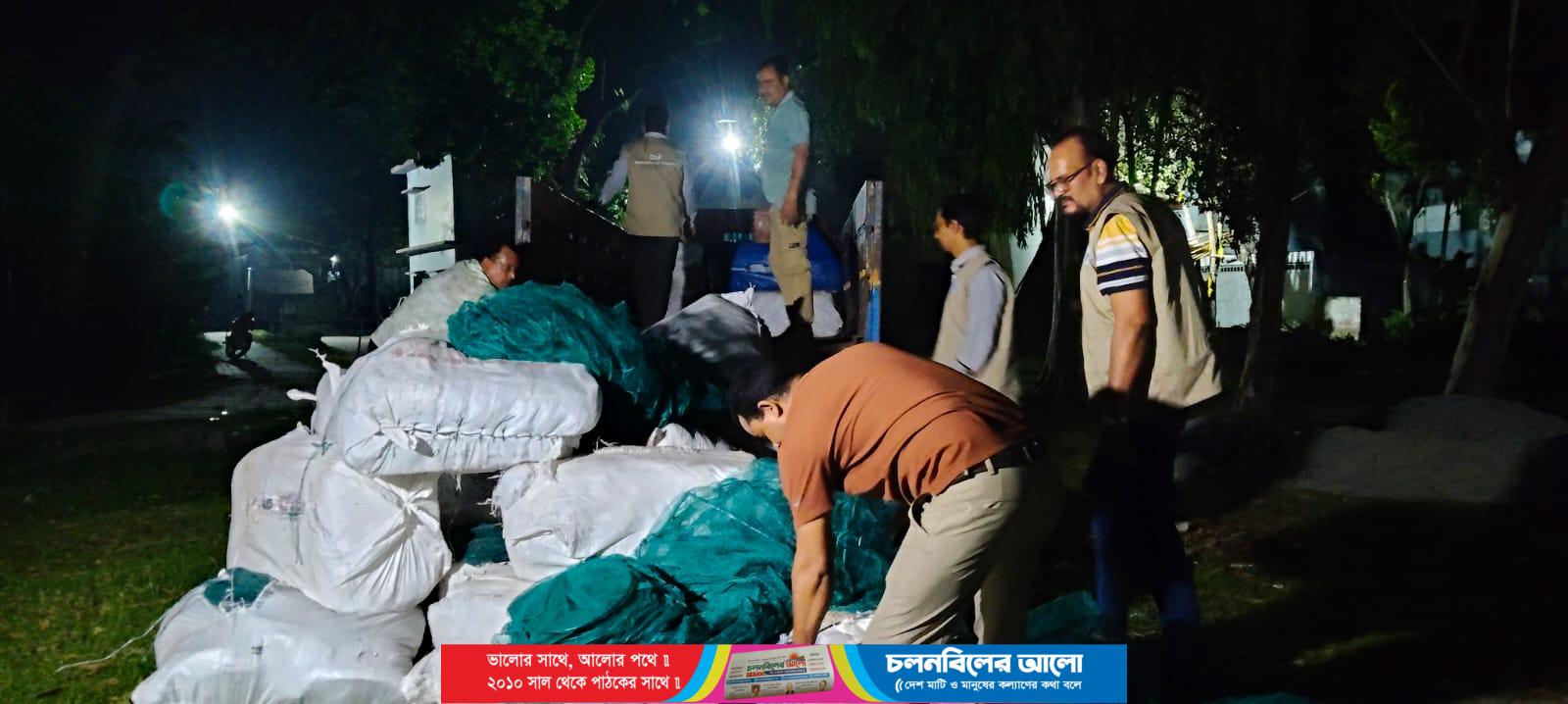 উল্লাপাড়ায় রাতে ২৭০ পিচ নিষিদ্ধ চায়না দুয়ারী জাল জব্দ ও অর্থ জরিমানা করেছেন ভ্রাম্যমাণ আদালত