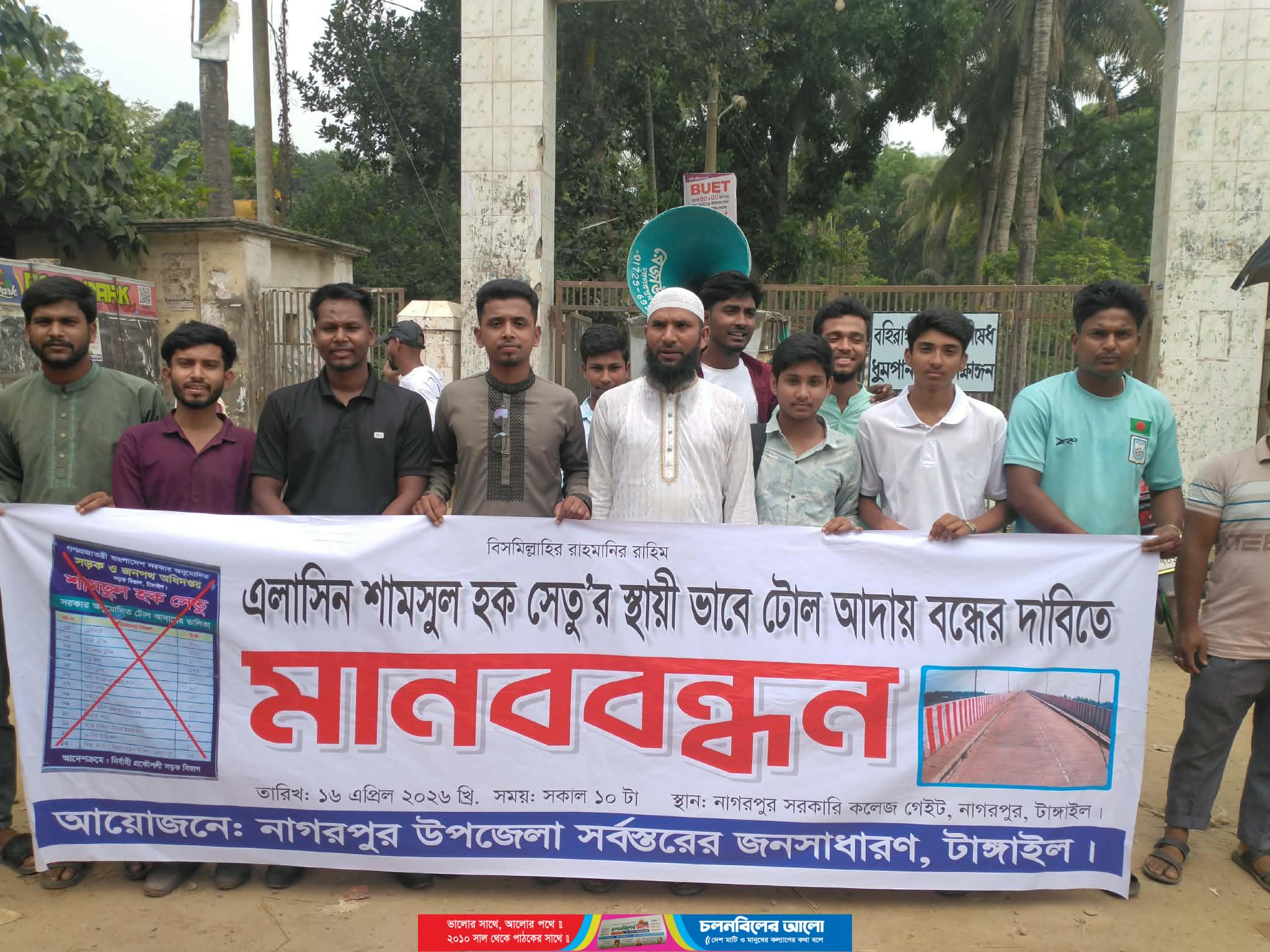 এলাসিন শামসুল হক সেতুর টোল বন্ধের দাবিতে টাঙ্গাইলের নাগরপুরে মানববন্ধন