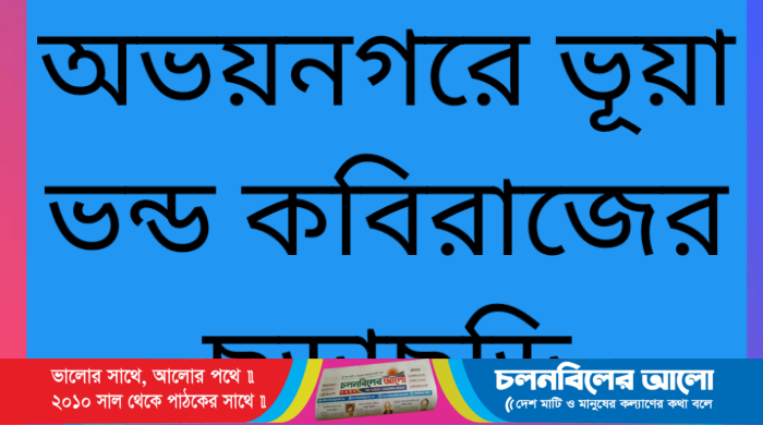 যশোরের অভয়নগর উপজেলার বিভিন্ন অঞ্চলে ভূয়া ও ভন্ড কবিরাজের ছড়াছড়িতে পরিনত হয়েছে। উপজেলা ঘুরে দেখা গেছে। এই সব ভন্ড কবিরাজের খপ্পরে পড়ে অনেকে সর্বশান্ত হয়েছে। ঐ সব ভন্ড নামধারী কবিরাজগণ