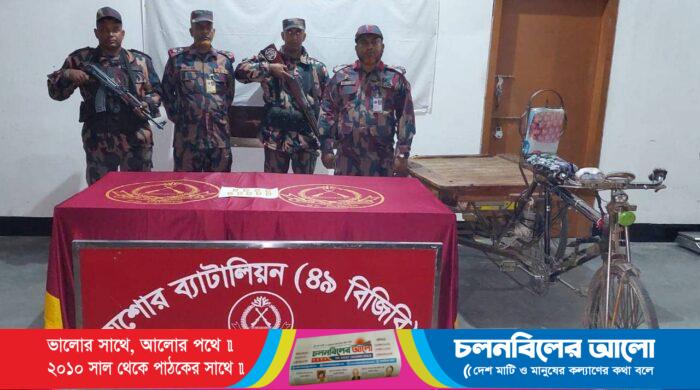 বেনাপোল আমড়াখালী এলাকা থেকে বিজিবি কর্তৃক এক (০১) কেজি পরিমান ৯ পিস স্বর্ণ আটক করেছে যশোর ৪৯ বিজিবি ব্যাটালিয়ন। শনিবার ২৬ নভেম্বর ২০২২ তারিখ রাত আনুমানিক ১১ঃ৩০ মিনিটে গোপন সংবাদের