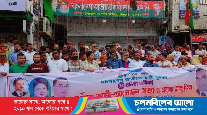 পাবনার ঈশ্বরদীতে বাংলাদেশ জাতীয়তাবাদী যুবদলের ৪৭তম প্রতিষ্ঠাবার্ষিকী উপলক্ষে উপজেলা ও পৌর যুবদলের উদ্যোগে বর্ণাঢ্য শোভাযাত্রা অনুষ্ঠিত হয়েছে। আজ (২৮অক্টোবর) পাবনা-৪ (ঈশ্বরদী-আটঘরিয়া) আসনের মনোনয়ন প্রত্যাশী পৌর বিএনপির সাবেক সাধারণ সম্পাদক জাকারিয়া
