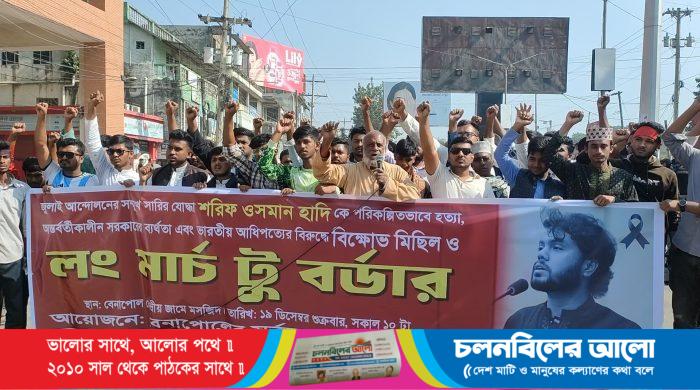 জুলাই আন্দোলনের সম্মুখ সারির যোদ্ধা শরিফ ওসমান হাদিকে পরিকল্পিতভাবে হত্যার প্রতিবাদে এবং অন্তর্বর্তীকালীন সরকারের ব্যর্থতা ও ভারতীয় আধিপত্যের বিরুদ্ধে বেনাপোলে বিক্ষোভ মিছিল ও ‘লং মার্চ টু বর্ডার’ কর্মসূচি অনুষ্ঠিত হয়েছে।