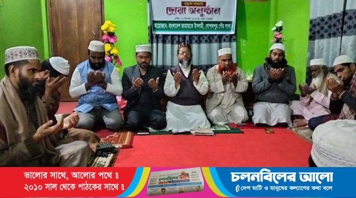 সাবেক তিন বারের প্রধানমন্ত্রী ও বিএনপি চেয়ারপারসন বেগম খালেদা জিয়ার সুস্থতা ও দীর্ঘায়ু কামনা করে বিশেষ আলোচনা ও দোয়ার আয়োজন করেছে জামায়াত ইসলামী টাংগাইল জেলার গোপালপুর পৌর শাখা। সোমবার (১