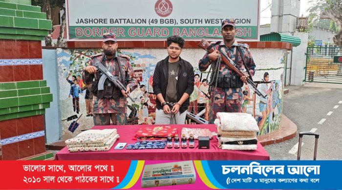 যশোর সীমান্তে অভিযান চালিয়ে মাদকদ্রব্য এবং অবৈধ চোরাচালানী মালামাল সহ আবু ইব্রাহিম আলী নামে এক ভারতীয় নাগরিককে আটক করেছে বিজিবি । ১ ডিসেম্বর ২০২৫ যশোর ব্যাটালিয়ন ৪৯ বিজিবি এর বিশেষ