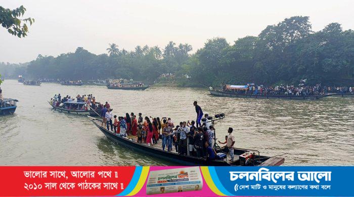 প্রতিটি নৌকা ভিন্ন ভিন্ন রকমারী সাজে সাজানো। ঢাক-ঢোল আর সাউন্ড বক্স, মাইকের সাউন্ডে মুখরিত চারপাশ। হিন্দু ধর্মাবলম্বী ছেলে-মেয়ে, শিশু, কিশোর-কিশোরী, যুবক-যুবতী সহ বিভিন্ন বয়সের মানুষের নাচানাচি। আর সেই দৃশ্য উপভোগ