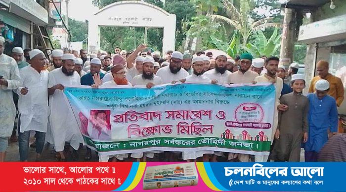 পার্শ্ববর্তী দেশ ভারতের মহারাষ্ট্রের পুরোহিত রামগিরি মহারাজ ও বিজেপি সংসদ সদস্য নিতেশ নারায়ন রানে মহানবী (সাঃ) কে নিয়ে বাজে কটুক্তির প্রতিবাদে টাঙ্গাইলের নাগরপুরে তৌহিদী জনতার উদ্যোগে বিক্ষোভ মিছিল অনুষ্ঠিত শুক্রবার(২৭