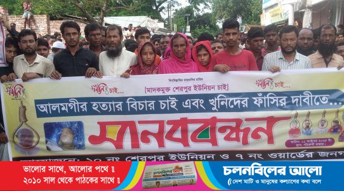 ময়মনসিংহের নান্দাইলে নির্মমভাবে নিহত আলমগীর হত্যার আসামিদের দ্রুত গ্রেফতার ও ফাঁসির দাবিতে মানববন্ধন ও বিক্ষোভ মিছিল অনুষ্ঠিত হয়েছে। বুধবার (১ অক্টোবর) দুপুরে উপজেলার শেরপুর ইউনিয়নের পাচরুখী বাজারে এ কর্মসূচি পালিত