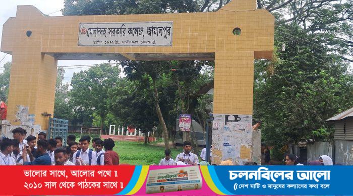 ছাত্র আন্দোলনে যখন সারাদেশ তালমাতাল সেই সুবাদে জামালপুরের মেলান্দহে সরকারি কলেজের অধ্যক্ষ প্রববীর মিত্রের পদত্যাগের দাবিতে ছাত্র, ছাত্রী এক দফা এক দাবি অধ্যক্ষের পদত্যাগের দাবিতে গত ১৮–আগস্ট–২০২৪। ছাত্র সাব্বির,শান্ত, কাওছার,সজল,সুর্য,সুমািয়া