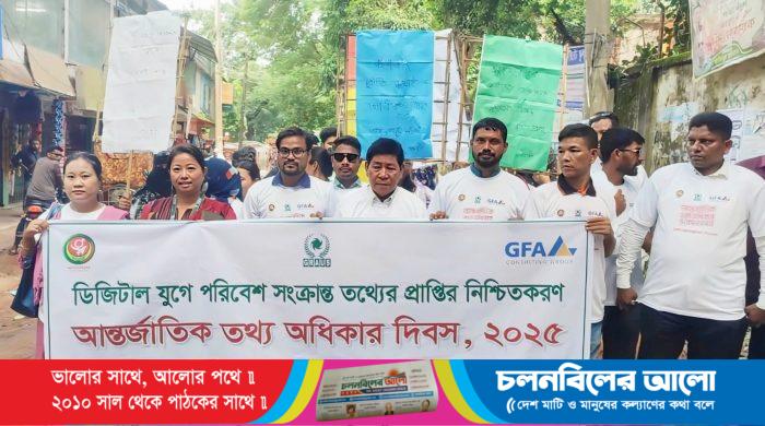 বান্দরবানের নাইক্ষ্যংছড়িতে আন্তর্জাতিক তথ্য অধিকার দিবস উপলক্ষে র্যালি ও আলোচনা সভা অনুষ্ঠিত। তথ্য অফিস, লামা ও গ্রাউসের যৌথ উদ্যোগে “ডিজিটাল যুগে পরিবেশ সংক্রান্ত তথ্যের প্রাপ্তি নিশ্চিতকরণ” প্রতিপাদ্যকে সামনে রেখে নাইক্ষ্যংছড়িতে আরোও পড়ুন...