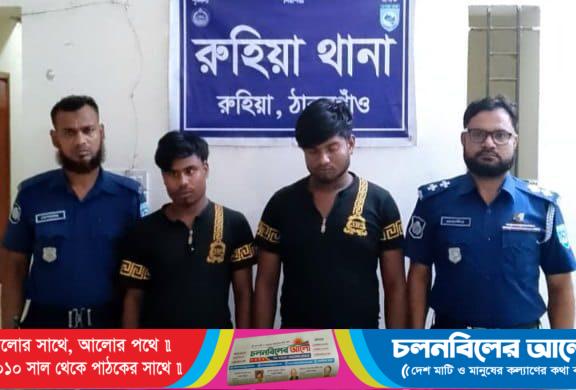 ঠাকুরগাঁওয়ের রুহিয়ায় ২০ পিচ ইয়াবা সহ রায়হান (২২) ও সিফাত ইসলাম (২০)নামে দুই মাদক ব্যবসায়ীকে গ্রেফতার করেছে রুহিয়া থানা পুলিশ। পুলিশ জানায়,১১ জুন (মঙ্গলবার) রাতে গোপন সংবাদের ভিত্তিতে রুহিয়া থানার
