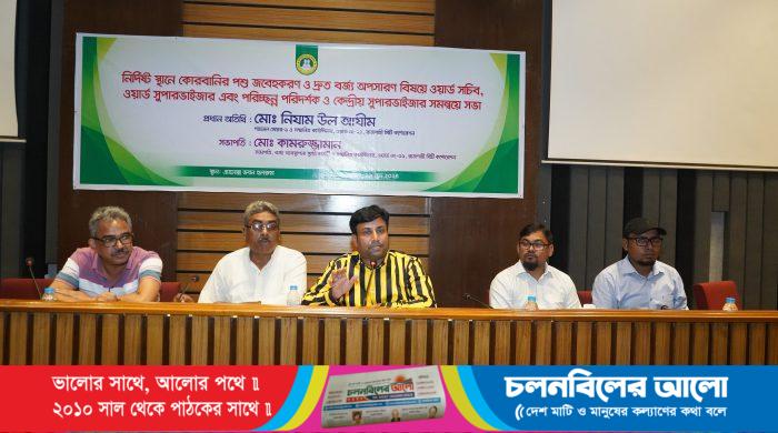 পবিত্র ঈদুল আযহা-২০২৪ উপলক্ষ্যে নির্দিষ্ট স্থানে কোরবানির পশু জবাইকরণ ও দ্রুত বর্জ্য অপসারণ বিষয়ে রাজশাহী সিটি কর্পোরেশনের ৩০টি ওয়ার্ড সচিব ও ওয়ার্ড সুপারভাইজার (পরিচ্ছন্ন) সমন্বেয় এক সভা অনুষ্ঠিত হয়েছে। মঙ্গলবার