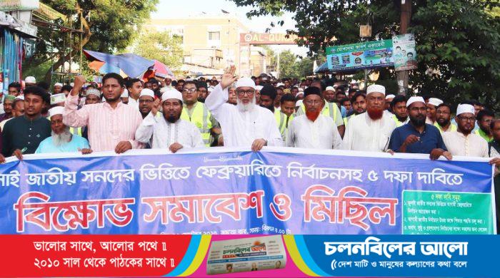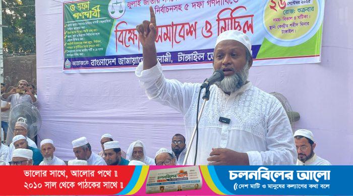 বাংলাদেশ জামায়াতে ইসলামীর কেন্দ্র ঘোষিত ৫ দফা বাস্তবায়নের দাবিতে বিক্ষোভ মিছিল ও সমাবেশ করেছে টাংগাইল জেলা জামায়াত। বিক্ষোভ মিছিল পূর্ব সমাবেশে জেলা আমীর আহসান হাবীব মাসুদ বলেন, জুলাই সনদকে আইনী