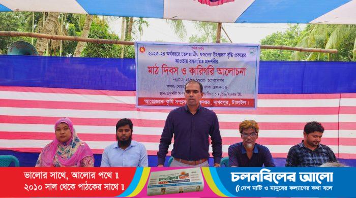 ২০২৩-২৪ অর্থ বছরে তেল জাতীয় ফসলের উৎপাদন বৃদ্ধি প্রকল্পের আওতায় বাস্তবায়িত প্রদর্শনী মাঠ দিবস ও কারিগরি আলোচনা সভা, গয়হাটা ইউনিয়নের কলিয়া ব্লকের ঘিওরকোলে অনুষ্ঠিত হয়েছে। মঙ্গলবার (৪ জুন) বিকেলে এ