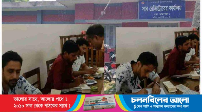 দলিল লেখক ও কর্মকর্তা-কর্মচারীদের সমন্বয়ে সিন্ডিকেটের দখলে পবা সাব-রেজিস্ট্রি অফিস। তাদের কাছে জিম্মি হয়ে পড়েছেন এখানে সেবা নিতে আসা সাধারণ মানুষ।নিজেদের মতো করে নিয়ম তৈরি করে চলে এই সাব-রেজিস্ট্রি অফিসের