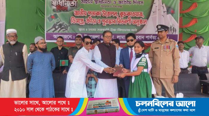 বান্দরবানের জনবহুল উপজেলা লামায় নানা কর্মসূচিতে মহান স্বাধীনতা ও জাতীয় দিবস নানা কর্মসূচিতে যথাযোগ্যভাবে পালিত হয়েছে। মঙ্গলবার (২৬ মার্চ) সূর্যোদয়ের সাথে সাথে সকল সরকারি,অর্ধা সরকারি,স্বায়ত্তশাসিত ও বেসরকারি প্রতিষ্ঠান ভবনে জাতীয়