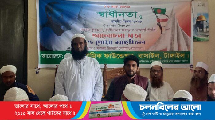 মহান স্বাধীনতা ও জাতীয় দিবস উপলক্ষে বাসাইল উপজেলা ইসলামিক ফাউন্ডেশনের উদ্যোগে গত মঙ্গলবার সকাল ৯টায় বাসাইল উপজেলা ইসলামিক ফাউণ্ডেশনের হল রুমে কুরআন খানি, মিলাদ ও দোয়া মাহফিল অনুষ্ঠিত হয়। দোয়া