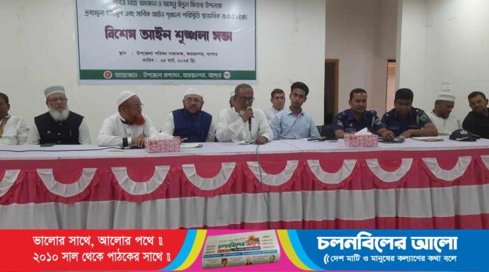 যশোরের অভয়নগরে পবিত্র মাহে রমজান ও আসন্ন ঈদুল ফিতর উপলক্ষে দ্রব্যমূল্য নিয়ন্ত্রণ ও সার্বিক আইন শৃঙ্খলা পরিস্থিতি স্বাভাবিক রাখার লক্ষ্যে বিশেষ আইন শৃঙ্খলা সভা অনুষ্ঠিত হয়েছে।গতকাল সোমবার দুপুরে উপজেলা প্রশাসনের