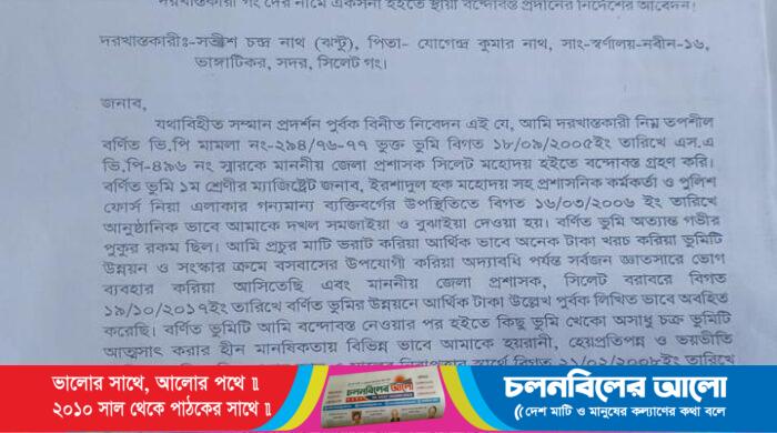 সিলেটের বিভাগীয় কমিশনার (রাজস্ব) ও জেলা প্রশাসক বরাবরে নগরীতে বন্দোবস্তকৃত সরকারি ভিপি সম্পত্তি আত্মসাতের অভিযোগে স্মারকলিপি প্রদান করেছেন ভুক্তভোগী সতীশ দেব নাথ ঝন্টু। গত ২৯ ফেব্রুয়ারী এ অভিযোগ করা হয়েছে।