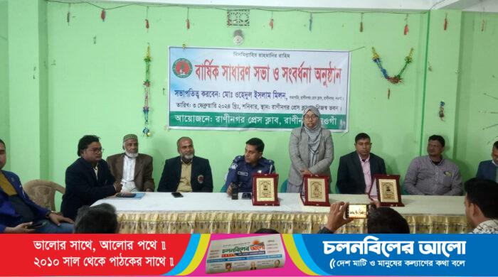 নওগাঁর রাণীনগর প্রেস ক্লাবের পক্ষ থেকে সম্মাননা স্মারক প্রদান ও বার্ষিক সাধারণ সভা অনুষ্ঠিত হয়েছে। শনিবার দুপুরে রাণীনগর প্রেস ক্লাবের নিজস্ব ভবনে প্রয়াত সাংবাদিক অরুন বোস সহ প্রয়াত সাংবাদিকদের স্মরণে