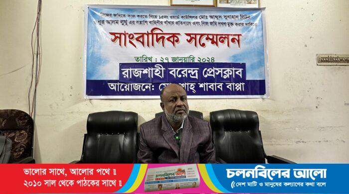 রাজশাহীতে নিজের জমিতে কাজ করতে গিয়ে রাসিকের ১৫ নং ওয়ার্ড কাউন্সিলর আব্দুস সুবাহান লিটন ও নূর আলম লুথু কর্তৃক সন্ত্রাসী বাহিনীর বাঁধা ও হামলার প্রতিবাদে এবং জমিটি দখলমুক্ত করার দাবিতে
