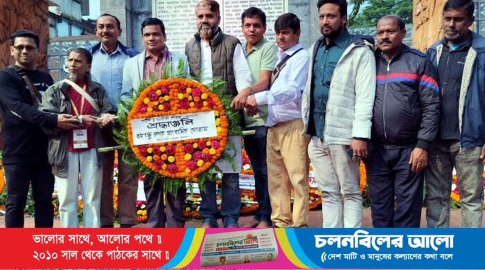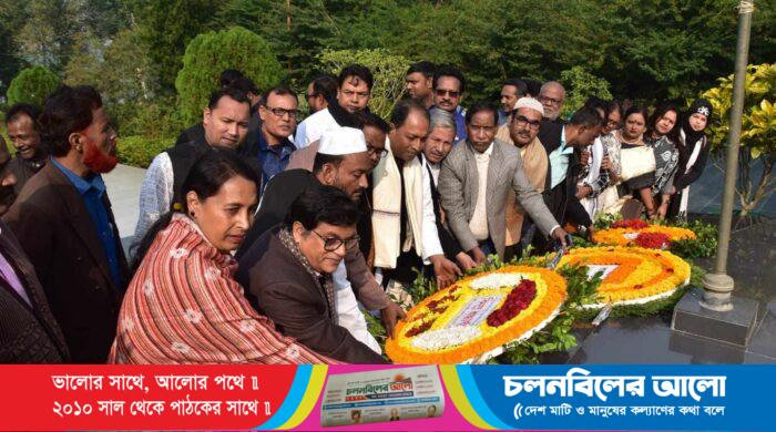 ১৯৭১ সালে মহান মুক্তিযুদ্ধে নিহত শহীদ বুদ্ধিজীবী দিবস উপলক্ষে সিলেট মহানগরীর চৌহট্টায় সকাল ১০টায় শহীদ বুদ্ধিজীবী কবরস্থানে শ্রদ্ধাঞ্জলি নিবেদন করেন বঙ্গবন্ধু লেখক সাংবাদিক ফোরাম সিলেট জেলা শাখার নেতৃবৃন্দ। বৃহস্পতিবার (১৪