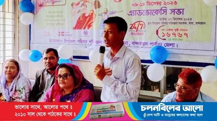 লামায় পরিবার কল্যাণ সেবা ও প্রচার সপ্তাহ উপলক্ষে এ্যাডভোকেসি সভা অনুষ্ঠিত হয়েছে। বৃহস্পতিবার (৭ ডিসেম্বর) বেলা ১১ টায় উপজেলা পরিবার পরিকল্পনা সভা কক্ষে লামা উপজেলা পরিবার পরিকল্পনা কার্যালয় এর আয়োজনে
