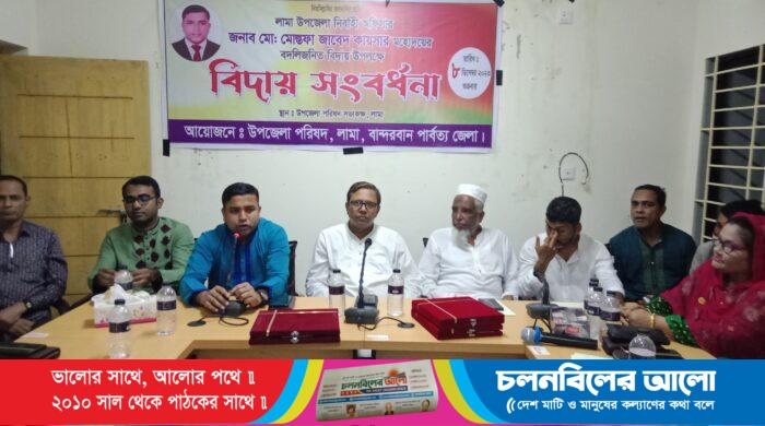 লামা উপজেলা নির্বাহী অফিসার মোঃ মোস্তফা জাবেদ কায়সার এর বদলিজনিত বিদায় উপলক্ষ্যে সংবর্ধনা সভা অনুষ্ঠিত হয়েছে। শুক্রবার (৮ ডিসেম্বর,২৩ ইং,) বিকাল ৪ টায় লামা উপজেলা পরিষদ হলরুমে উপজেলা পরিষদের আয়োজনে
