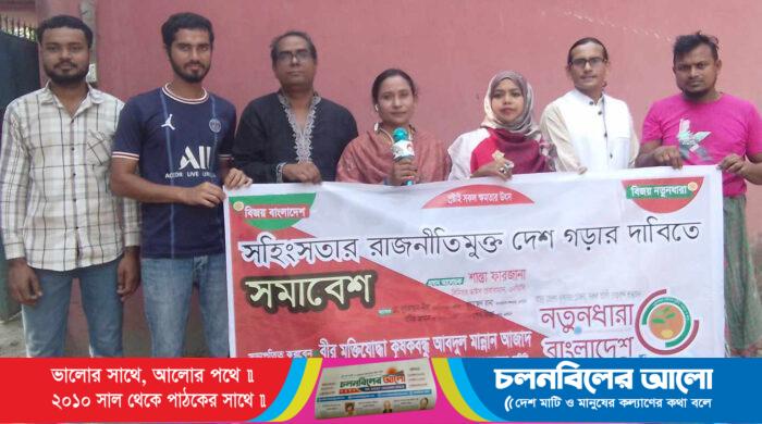 সহিংসতার রাজনীতিমুক্ত দেশ গড়ার দাবিতে সমাবেশ করেছে নতুনধারা বাংলাদেশ এনডিবি। ২১ নভেম্বর সকালে হরতাল-অবরোধমুক্ত রাজনীতির আহবান জানিয়ে অনুষ্ঠিত সমাবেশে সভাপতিত্ব করেন নতুনধারা বাংলাদেশ এনডিবির চেয়ারম্যান মোমিন মেহেদী। বক্তব্য রাখেন নতুনধারার