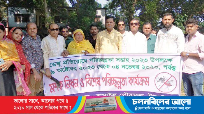 টাঙ্গাইলের বাসাইলে ডেঙ্গু প্রতিরোধে পরিচ্ছন্নতা সপ্তাহ উপলক্ষ্যে মশক নিধন ও বিশেষ পরিচ্ছন্নতা কার্যক্রমের উদ্বোধন করা হয়েছে। রবিবার (২৯ অক্টোবর) সকালে উপজেলা পরিষদ চত্তর এলাকায় গাছপালা পরিষ্কার করে এ কার্যক্রমের উদ্বোধন