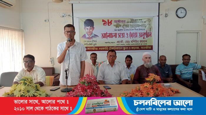 শহিদ শেখ রাসেলের জন্ম দিন ও শেখ রাসেল দিবস উপলক্ষে সাতক্ষীরা সরকারি টেকনিক্যাল স্কুল এন্ড কলেজের উদ্যোগে আলোচনা সভা অনুষ্ঠিত হয়েছে। বুধবার বেলা সাড়ে ১২ টায় কলেজ হলরুমে এ আলোচনা