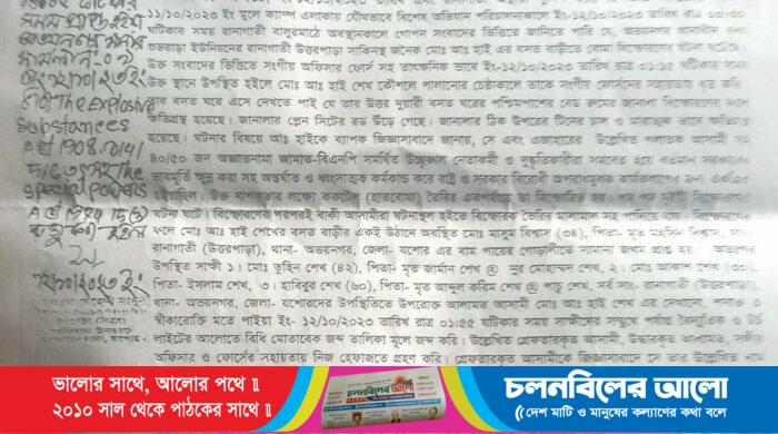 যশোরের অভয়নগরে সরকারের ভাবমূর্তি ক্ষুণ্ন করতে রানাগাতি এলাকায় সংঘবদ্ধ চক্রের বোমা হামলার প্রস্তূতির সময় বিষ্ফোরণের ঘটনা ঘটেছে। এব্যাপারে অভয়নগর থানায় ১১ জনের নাম উল্লেখ করে অজ্ঞাত ৪০/৫০ জনের নামে একটি