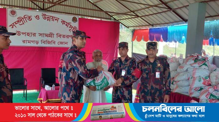 খাগড়াছড়ির রামগড়ে মানবিক সহায়তার অংশ হিসেবে গরীব, অসহায় বাঙালী-পাহাড়ী পরিবারের মাঝে খাদ্য সামগ্রী প্রদান করেছে সীমান্ত সুরক্ষার দায়িত্বে নিয়োজিত ৪৩ বিজিবি (রামগড় ব্যাটালিয়ন)। শনিবার (৩০সেপ্টেম্বর)সকাল ১০টায় ৪৩ বিজিবির রামগড় ব্যাটালিয়ন
