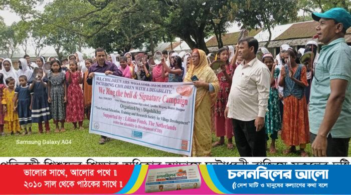 “আমরা চাই প্রতিবন্ধীসহ সকল শিশু বিদ্যালয়ে আসুক” এই প্রতিপাদ্যে প্রতিবন্ধী শিশুদের শিক্ষার অধিকার আদায়ে এক মিনিট ঘন্টাধ্বনী বাজিয়ে সকলের দৃষ্টি আকর্ষন করলো দিনাজপুরের বীরগঞ্জের শিশুরা। “উই রিং দ্য বেল” নামক