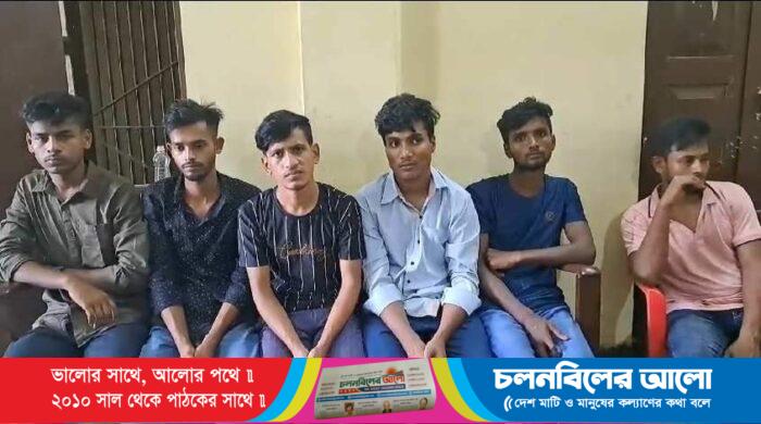 অবৈধভাবে সীমান্ত পাড়ি দিয়ে খাগড়াছড়ি পার্বত্য জেলার রামগড় সীমান্তের ওপারে ভারতের সাব্রুমে অনুপ্রবেশের অভিযোগে ৬ বাংলাদেশি যুবককে আটক করেছে ভারতের ত্রিপুরা রাজ্যের সাব্রুম থানা পুলিশ। গতকাল বুধবার (৩০ আগষ্ট) দুপুরে ওই বাংলাদেশি ৬ যুবক সাব্রুমে অবৈধভাবে প্রবেশ করে। জানা গেছে, সাব্রুমের ছোটখিল চা বাগান এলাকায় কয়েকজন বাংলাদেশি যুবক অবস্থান করছে এমন গোপন সংবাদের ভিক্তিতে সাব্রুম থানা পুলিশের উপপরিদর্শক ধ্রুব মজুমদারের নেতৃত্বে সাদা পোশাকের কয়েকজন পুলিশ ওই এলাকায় তল্লাশি চালায়। এসময় পুলিশের উপস্থিতি টের পেয়ে বাংলাদেশি যুবকরা চা বাগানে দৌঁড়াতে থাকে এবং পুলিশ দীর্ঘক্ষণ তাদের পেছনে ধাওয়া করে। একপর্যায়ে ছয় বাংলাদেশি যুবককে গ্রেফতার করে নিয়ে যায় সাবরুম থানায়। গ্রেফতারকৃতরা হলেন, রুবেল হোসেন (২১), ইমাম হোসেন (১৮), ইব্রাহিম কোহিলি (২৪), গিলাতলীর মোহাম্মদ রফিক (২৩), মিনার হোসেন (২৩) ও মোহাম্মদ ইসমাইল (২০) আটক সবাই চট্টগ্রামের ফটিকছড়ি উপজেলার বাসিন্ধা। সূত্র জানায়, বর্তমানে ওই ছয় বাংলাদেশী যুবককের বিরুদ্ধে অবৈধভাবে ভারতে প্রবেশ করার দায়ে ভারতীয় পাসপোর্ট আইনে মামলা দায়ের করে জিজ্ঞাসাবাদ চালিয়ে যাচ্ছে সাব্রুম থানা পুলিশ। এ বিষয়ে জানতে চাইলে বিজিবির রামগড় ব্যাটালিয়ন অধিনায়ক লে. কর্ণেল মোঃ আবু বকর সিদ্দিক সাইমুম জানান, ‘ভারতের সাব্রুমে ছয় বাংলাদেশী যুবকের আটকের একটি সংবাদ পেয়েছি।