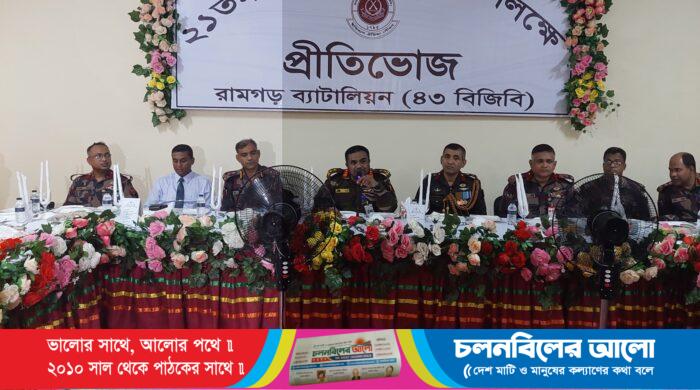 বর্ডার গার্ড বাংলাদেশ (বিজিবি) এর রামগড় ৪৩ ব্যাটালিয়নের ২১ তম প্রতিষ্ঠা বার্ষিকী উদযাপিত হয়েছে। এ উপলক্ষে ৪৩ বিজিবি দোয়া, আলোচনা সভা, কেক কাটা এবং প্রীতিভোজের আয়োজন করে। সোমবার (৩১ জুলাই)