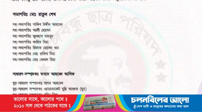 মানিকগঞ্জ জেলা বঙ্গবন্ধু ছাত্র পরিষদের নতুন কমিটি অনুমোদন দিয়েছে কেন্দ্রীয় নির্বাহী সংসদ। বঙ্গবন্ধু ছাত্র পরিষদের কেন্দ্রীয় নির্বাহী সংসদের সভাপতি – আসিফ জামান রুপম ও সাধারণ সম্পাদক সাকির মজুমদারের এক স্বাক্ষরিত
