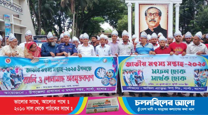 “নিরাপদ মাছে ভরবো দেশ, গড়বো স্মার্ট বাংলাদেশ’’ এ প্রতিপাদ্যে সামনে নিয়ে যশোরের শার্শায় ব্যাপক উৎসাহ ও আনুষ্ঠানিকতার মধ্যে দিয়ে জাতীয় মৎস্য সপ্তাহ পালিত হচ্ছে। মৎস্য অধিদপ্তর ও উপজেলা প্রশাসনের আয়োজনে আরোও পড়ুন...