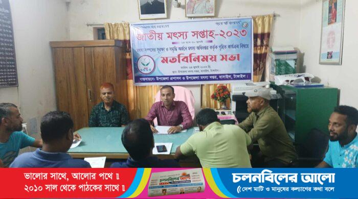 ‘নিরাপদ মাছে ভরবো দেশ গড়বো স্মার্ট বাংলাদেশ’ এই স্লোগান গানকে সামনে রেখে জাতীয় মৎস্য সপ্তাহ ২০২৩ ইং উদযাপন উপলক্ষে বাসাইল উপজেলায় সাংবাদিক ও মৎস্য চাষিদের সাথে মতবিনিময় সভা অনুষ্ঠিত হয়েছে।