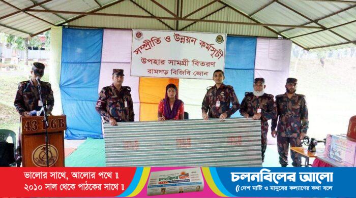 খাগড়াছড়ির রামগড়ে ৪৩ বর্ডার গার্ড ব্যটালিয়ন রামগড় জোনের ব্যবস্থাপনায়সম্প্রীতি ও উন্নয়ন প্রকল্পের আওতায় রামগড়ের গরীব ও দুস্থ্য, ক্ষুদ্র নৃ-গোষ্ঠী এবং বাঙ্গালীদের মাঝে সেলাই মেশিন, টিন, ছাগল, মসজিদের ওজুখানা নির্মাণ এবং