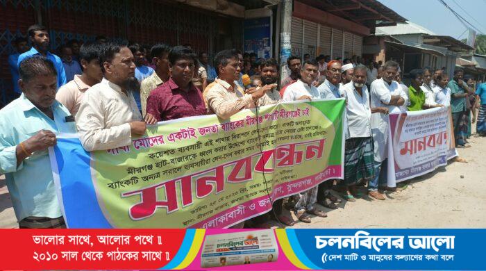 গাইবান্ধার সুন্দরগঞ্জ পৌর শহরের অন্যতম বাণিজ্যিক কেন্দ্র মীরগঞ্জ বাজারে অবস্থিত জনতা ব্যাংক লিমিটেড শাখাটি জনমত উপেক্ষা করে অন্যত্র সরিয়ে নেওয়ার অপচেষ্টার বিরুদ্ধে মানববন্ধন কর্মসূচি পালিত হয়েছে। বৃহস্পতিবার সকাল ১০টার দিকে