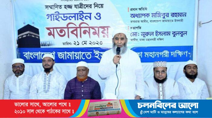 বাংলাদেশ জামায়াতে ইসলামী ঢাকা মহানগরী দক্ষিণের উদ্যোগে রবিবার রাতে রাজধানীর একটি মিলনায়তনে ২০২৩ সালের হজ্ব যাত্রীদের নিয়ে গাইডলাইন ও মতবিনিময় সভা অনুষ্ঠিত হয়েছে। মতবিনিময় সভায় প্রধান অতিথি হিসেবে উপস্থিত ছিলেন