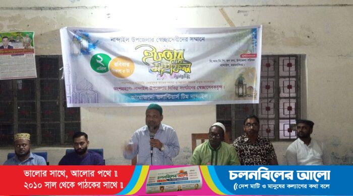ময়মনসিংহের নান্দাইল উপজেলায় ২২ টি স্বেচ্ছাসেবী সংগঠনের ৯৩ জন স্বেচ্ছাসেবকের অংশ গ্রহণের মাধ্যমে রবিবার (৩রা এপ্রিল) ইফতার ও দোয়া মাহফিল উপজেলা বি.আর.ডি.বি হল রুমে অনুষ্ঠিত হয়েছে। নান্দাইল প্রেসক্লাবের সভাপতি বিশিষ্ট