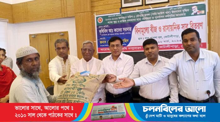 গোপালগঞ্জের কোটালীপাড়া উপজেলায় ৩হাজার ৭শ ক্ষুদ্র ও প্রান্তিক চাষী পরিবারকে বিনামূল্যে বীজ ও সার বিতরণ করা হয়েছে। বৃহস্পতিবার উপজেলা কৃষি সম্প্রসারণ অধিদপ্তরের উদ্যোগে ১৫শ কৃষকের মাঝে ১ কেজি করে পাট