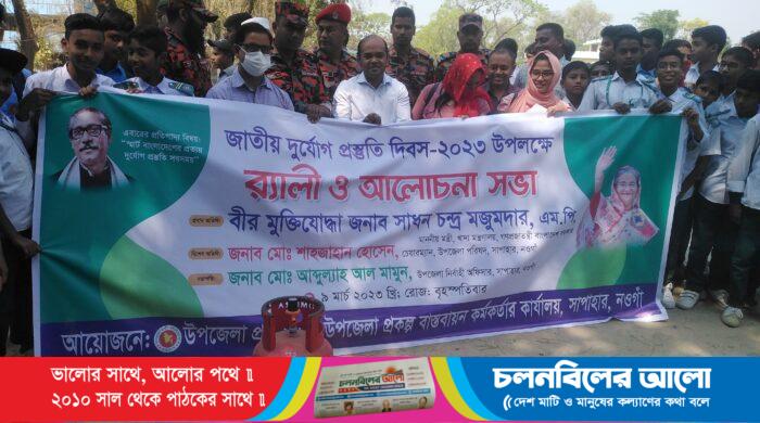 নওগাঁর সাপাহারে জাতীয় দুর্যোগ প্রস্তুতি দিবস উপলক্ষে র্যালী আলোচনা সভা ও ফায়ার সার্ভিসের অগ্নিকান্ড মহড়া অনুষ্ঠিত হয়েছে। বৃহস্পতিবার সকাল সাড়ে ১১ টায় উপজেলা প্রশাসনের আয়োজনে ও দুর্যোগ ব্যাবস্থাপনা অধিদপ্তর এবং