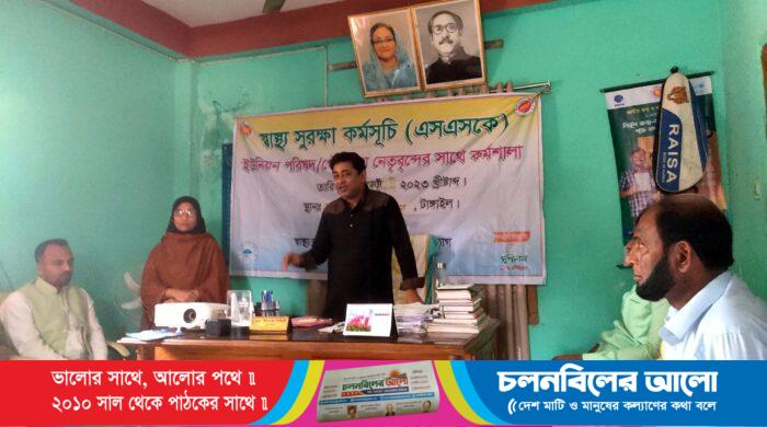 টাঙ্গাইলের নাগরপুরে দপ্তিয়র ইউনিয়ন পরিষদের নেতৃবৃন্দর সাথে স্বাস্থ্য সুরক্ষা কর্মশালা (এসএসকে) ও সুশীলন এনজিওর সহযোগীতায় কর্মশালা অনুষ্ঠিত হয়েছে। রবিবার সকাল ১১ ঘটিকায় উপজেলার দপ্তিয়র ইউনিয়ন কার্যালয়ে এ কর্মশালা অনুষ্ঠিত হয়।