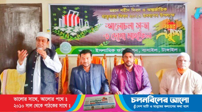 টাঙ্গাইলের বাসাইলে ইসলামিক ফাউণ্ডেশনের উদ্যোগে ইসলামিক ফাউণ্ডেশনের হল রুমে মহান শহীদ দিবস ও আন্তর্জাতিক মাতৃভাষা দিবস ২০২৩ উদযাপন উপলক্ষে আলোচনা সভা ও দোয়া মাহফিলের আয়োজন করা হয়েছে। এই আলোচনা সভা