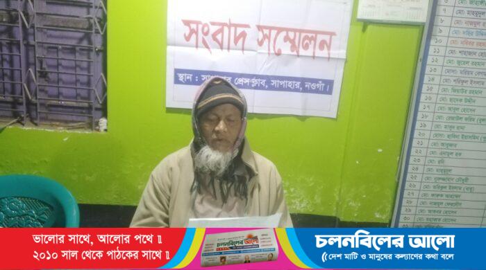 নওগাঁর সাপাহারে জমি জালিয়াতি করে লিখে নেয়ায় আপন ছোট ছেলের বিরুদ্ধে সংবাদ সম্মেলন করেছে বৃদ্ধ পিতা। ২৩ ডিসেম্বর শুক্রবার সকাল ১১ টার দিকে সাপাহার প্রেসক্লাবে উপস্থিত হয়ে সংবাদ সম্মেলন করেছে