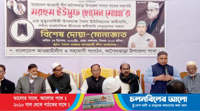 বরিশালের আগৈলঝাড়া উপজেলা আওয়ামী লীগের সাবেক সভাপতি মরহুম ইউসুফ হোসেন মোল্লার ৮ম মৃত্যুবার্ষিকী উপলক্ষে আওয়ামী লীগ ও সকল সহযোগী সংগঠনের উদ্দ্যোগে স্মরণসভা ও রুহের মাগফিরাত কামনায় দোয়া মিলাদ অনুষ্ঠিত হয়েছে।